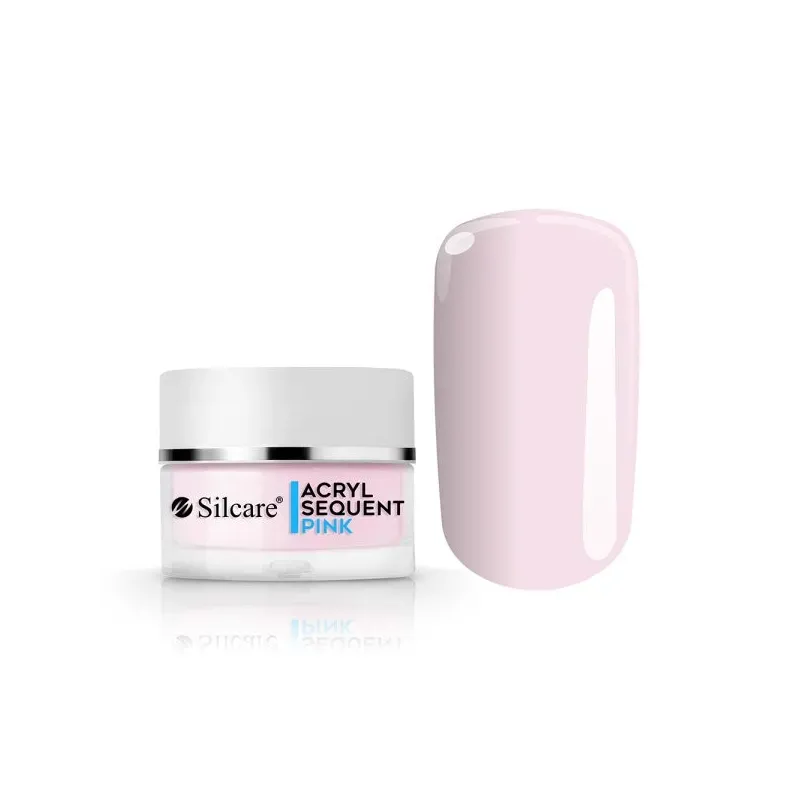 Polvere acrilica costruttore Sequent acryl Pro PINK Silcare 36 gr, color rosa lattiginoso, creato per coprire le imperfezioni dell'unghia e allungare il letto ungueale in una french manicure.