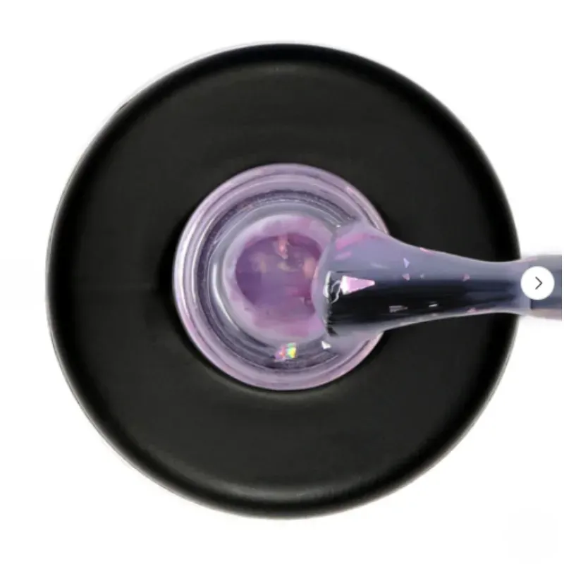 La Base coat ibrida Rubber Flakes Base è una base semipermanente lilla con scaglie rosa che grazie alla sua formula innovativa può essere utilizzata anche per piccoli allungamenti e lievi bombature.
