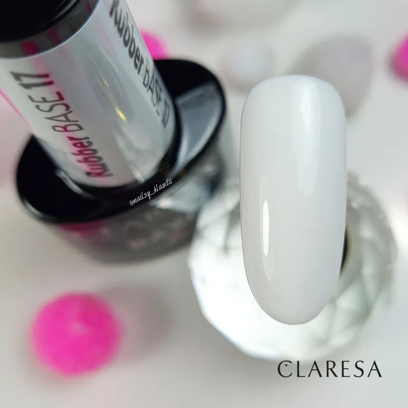 La Base coat ibrida RUBBER Claresa è una base semipermanente color bianco latte 2IN1 che contiene primer acido, promotore di adesione, densità alta, può essere utilizzata per microallungamenti e fullcover tip.