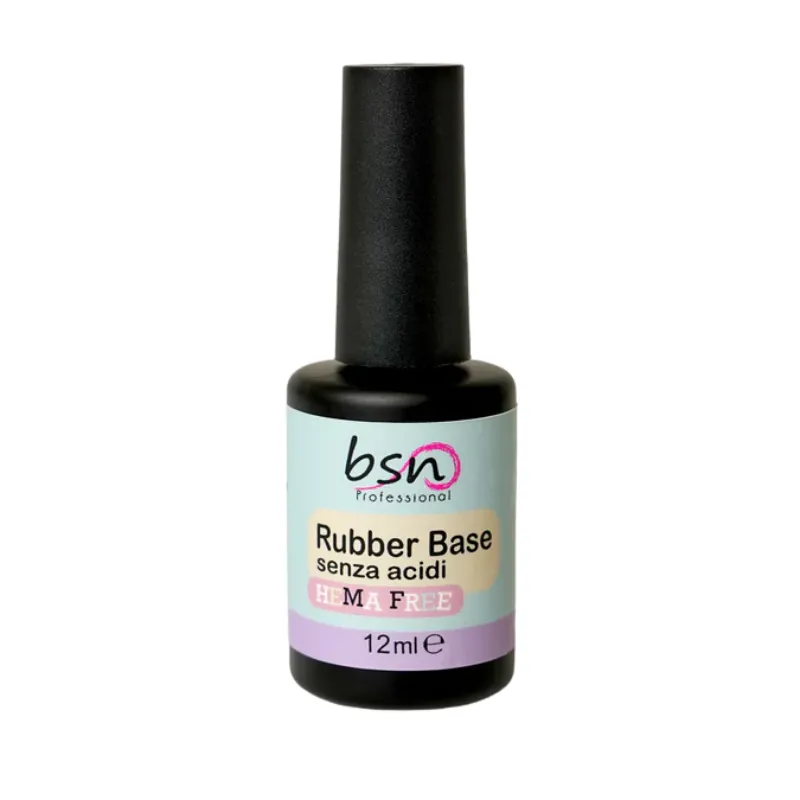 La base rubber BSN è una base trasparente con pigmento antigiallo, grazie alla sua formula innovativa può essere utilizzata anche per piccoli allungamenti e lievi bombature.
