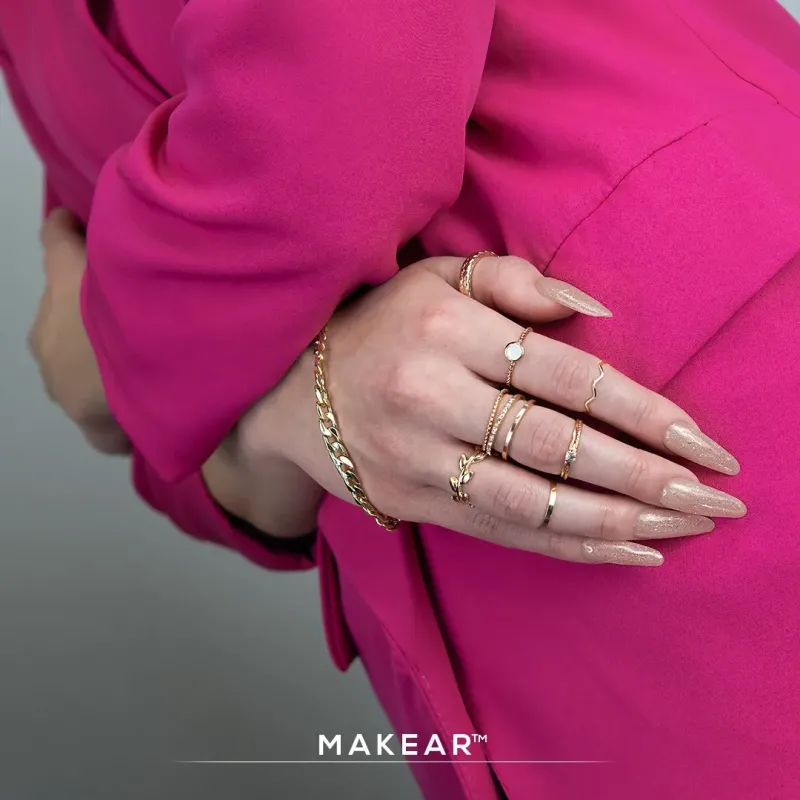 Il gel uv champagne Glitter Beige Makear ha una densità alta ma comunque autolivellante infatti è consigliato per la tecnica senza limatura nofile; grazie alla sua alta densità non cola, ed è possibile lavorare fino a 2 unghie alla volta.