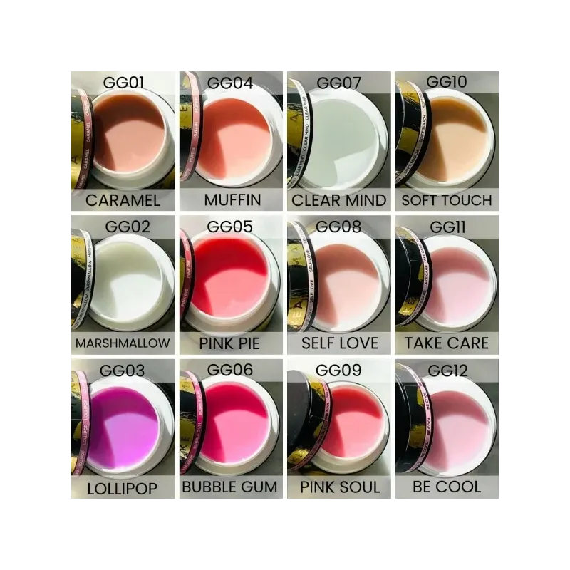 Il gel Gel&go Makear è disponibile in 12 colorazioni: GG01 CARAMEL; GG02 MARSHMALLOW; GG03 LOLLIPOP; GG04 MUFFIN; GG05 PINK PIE; GG06 BUBBLE GUM; GG07 CLEAR MIND; GG08 SELF LOVE; GG09 PINK SOUL; GG10 SOFT TOUCH; GG11 TAKE CARE; GG12 BE COOL.