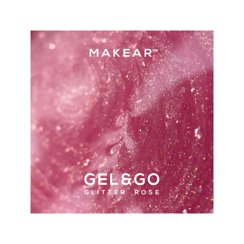 Il gel Gel&go glitter Makear è disponibile in 8 colorazioni: GG20 GLITTER MILKY; GG21 GLITTER ICE PINK; GG22 GLITTER PINK; GG23 GLITTER ROSE; GG24 GLITTER LILA ROSE; GG25 GLITTER BEIGE; GG26 GLITTER NUDE; GG27 GLITTER DARK ROSE.
