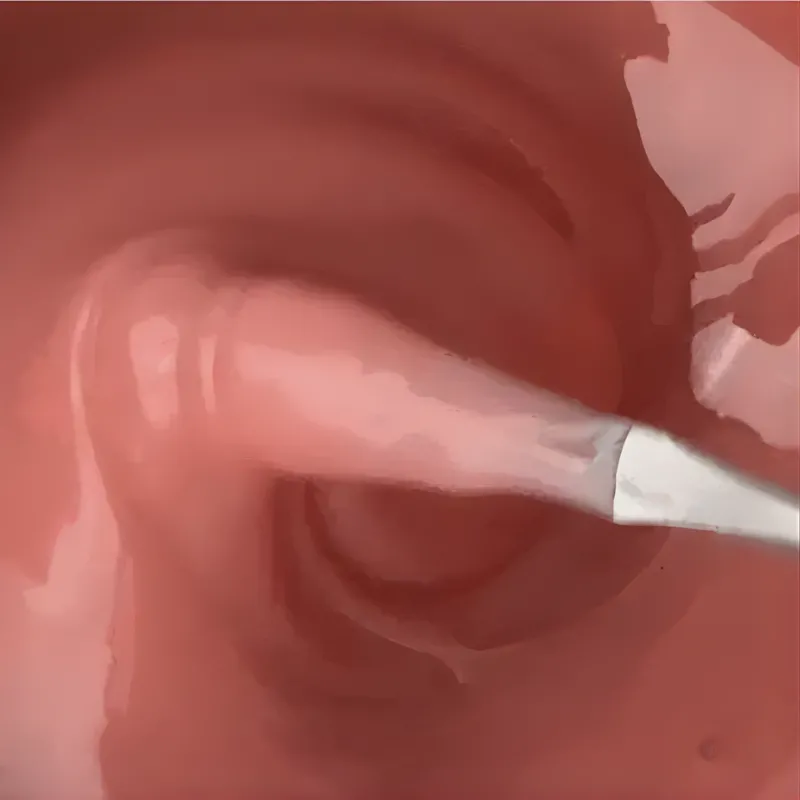 Puoi aiutarti con un pennello a punta sottile per definire e stendere bene sul girocuticole e ai laterali. Polimerizzare e rimuovere la dispersione.