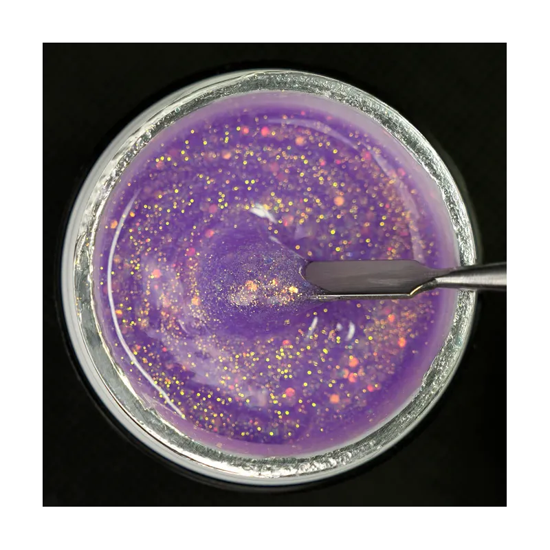 Gel uvled costruttore monofasico, linea CREAM GLAM, geluv glitterato Starry GIRL è un cover coprente adatto alla tecnica muretto, è tissotropico molto autolivellante, densità altissima ma morbido, adatto a tutte le stagioni, colore lilla con glitter iridescenti, 30gr
