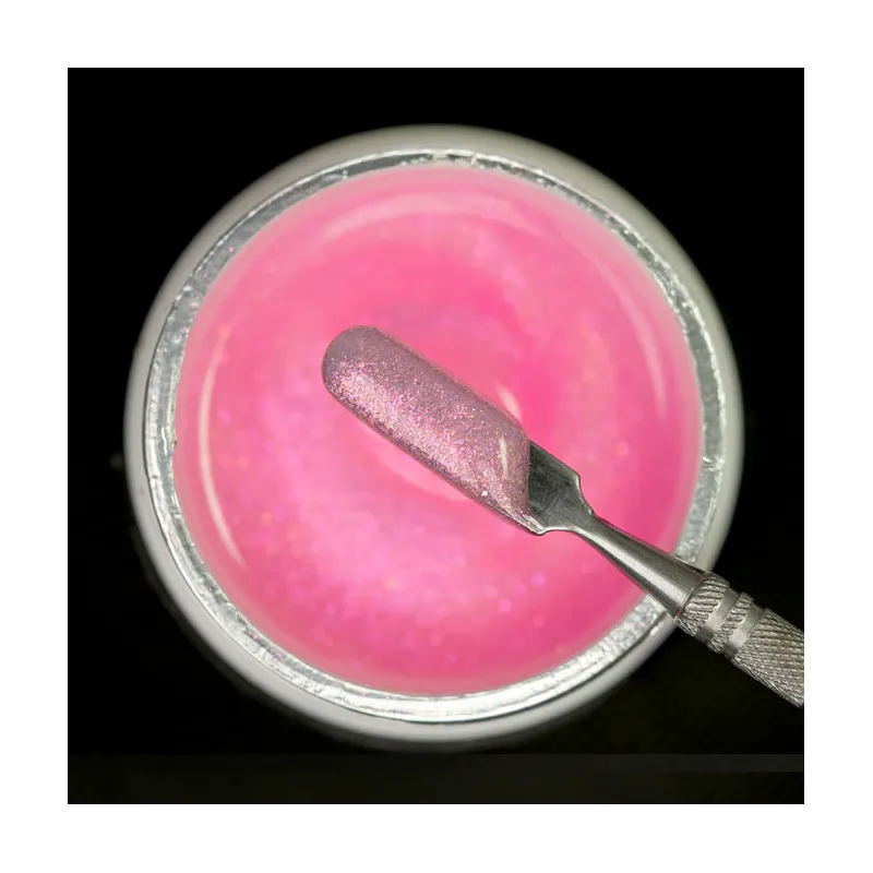 Gel uvled costruttore monofasico, linea CREAM GLAM, geluv glitterato Starry ROSE è un cover coprente adatto alla tecnica muretto, è tissotropico molto autolivellante, densità altissima ma morbido, adatto a tutte le stagioni, colore rosa con glitter iridescenti, 30gr