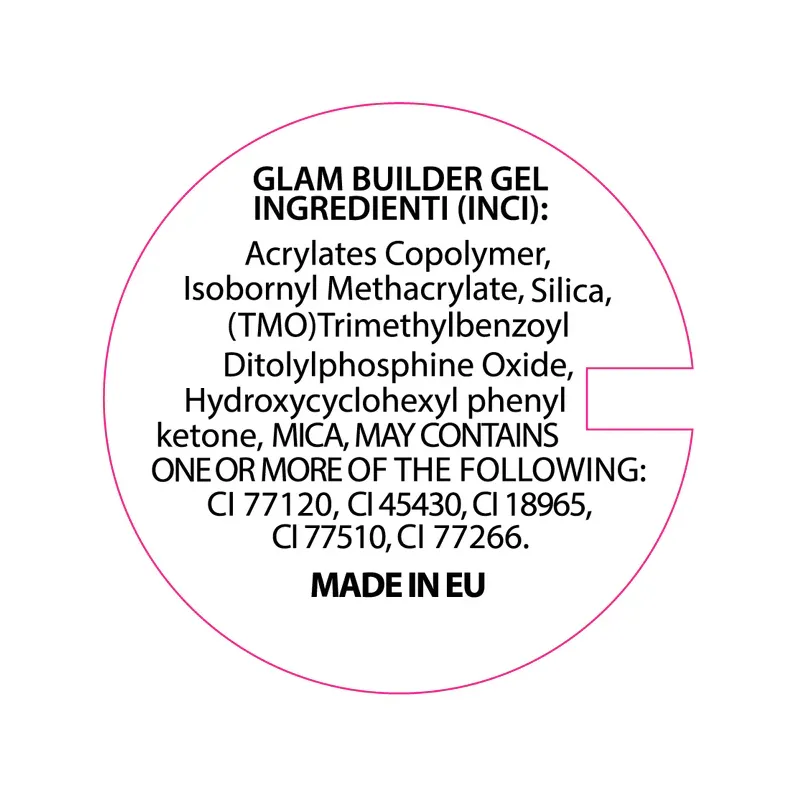 INCI: Acrylates Copolymer, Isobornyl Methacrylate, Silica, (TMO)Trimethylbenzoyl Ditolylphosphine Oxide, Hydroxycyclohexyl phenyl ketone, MICA, MAY CONTAINS ONE OR MORE OF THE FOLLOWING: CI 77120, CI 45430, CI 18965, CI 77510, CI 77266.