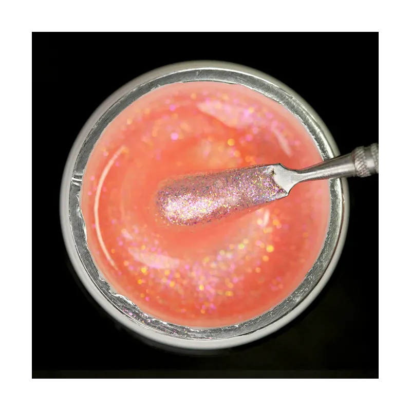 Gel uvled costruttore monofasico, linea CREAM CREAM, geluv glitterato Starry ROSE è un cover coprente adatto alla tecnica muretto, è tissotropico molto autolivellante, densità altissima ma morbido, adatto a tutte le stagioni, colore pesca con glitter iridescenti, 30gr