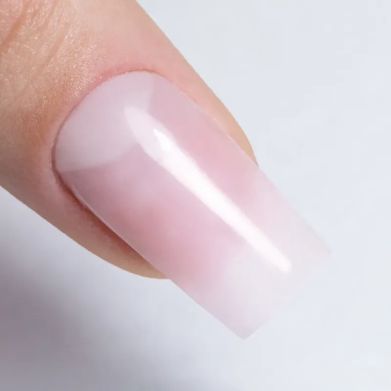 Il rosa lattiginoso denso è un gel flessibileadatto ad allungamenti medio corti e si adatta a tutti i tipi di unghie.