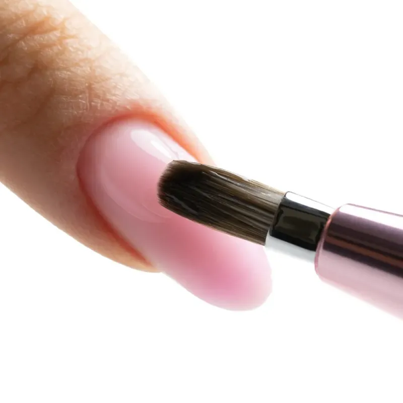 Il pennello per gel color o gel builder ha la punta arrotondata (anche chiamata ovale) che facilita la stesura del colore sotto cuticola per creare lavori più precisi e duraturi. Molte onicotecniche lo usano anche per la lavorazione di gel a bassa densita.