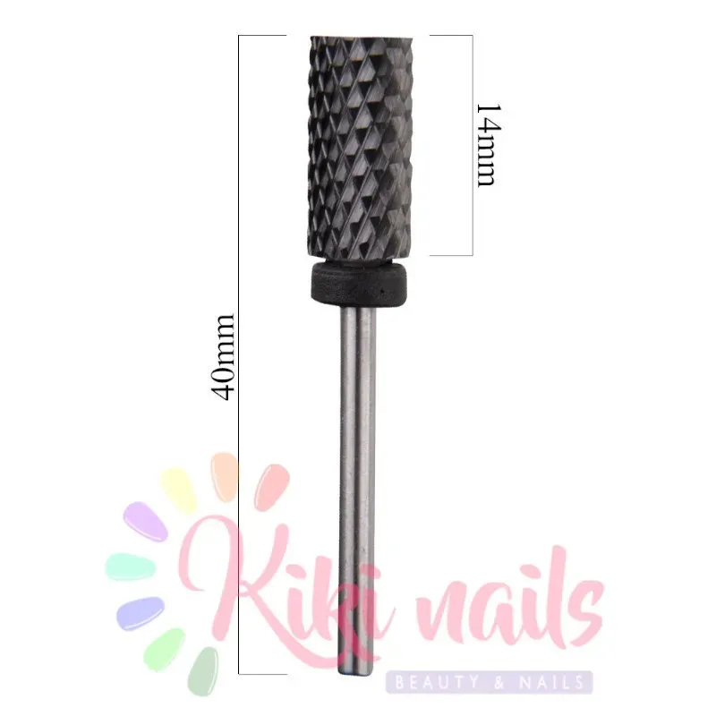 Punta fresa per rimozione gel a forma cilindrica piatta, con punta in ceramica nera aggressiva EXTRA COARSE, adatta a smontare gel e acrilico creando poca polvere e non surriscaldando.