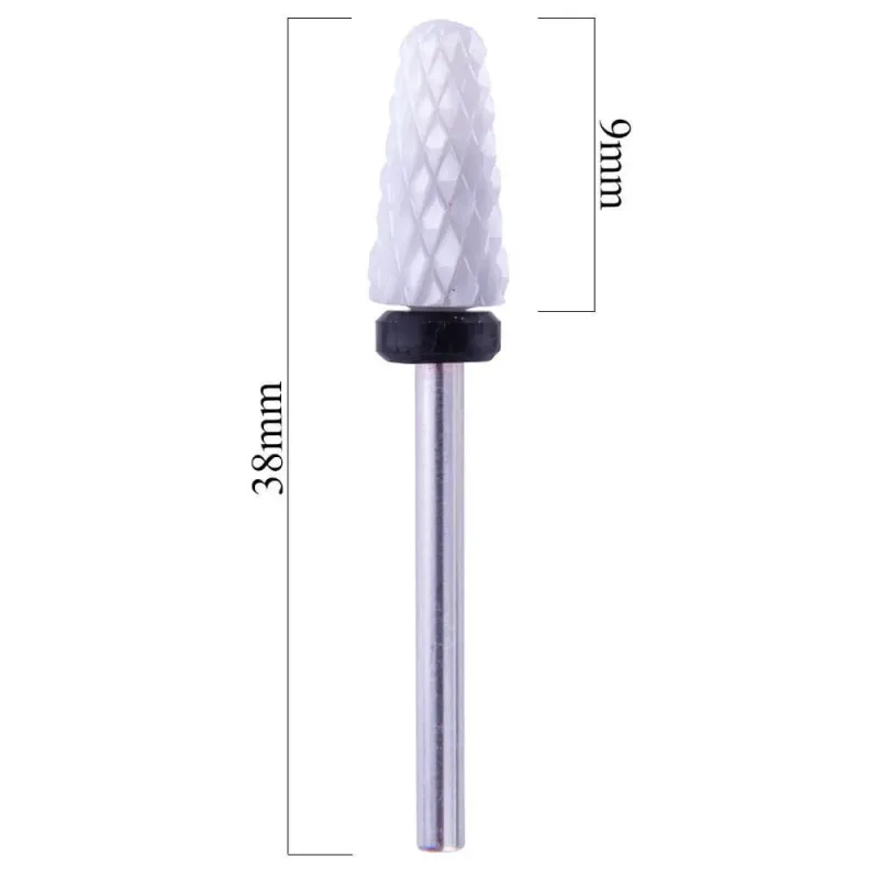 La punta fresa piramide in ceramica garantisce dei risultati ottimi in poco tempo, ha particolari scanalature e intagli che creano una polvere più spessa, che viene aspirata molto più facilmente dall’aspiratore, per questo è consigliata nella fase di limatura e smontaggio del gel o acrilico. Ha la fascetta nera che indica la forte abrasività, infatti è un grit XC EXTRACOARSE, molto aggressivo, con fascette nere. Inoltre non crea calore anche se usata ad alte velocità, è sterilizzabile e di lunga durata.