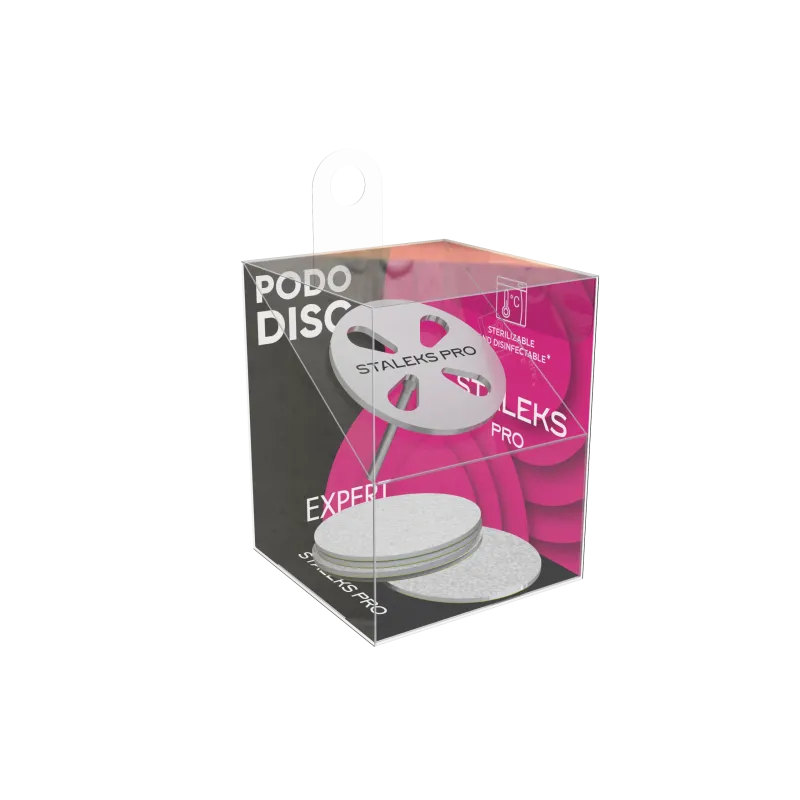 La punta pododisc per pedicure staleks ha un diametro della superficie di lavoro da 25 mm con un gambo lungo 26.5 mm. Il set Pododisk viene fornito con 5 lime refill usa e getta grana 180.