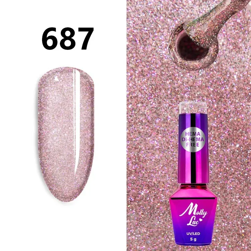 Semipermanente Allepaznokcie linea MOLLY LAC SHOCKING SHINE holo iridescente glitter, 5 ML, densità media 2in1, con le nuance più richieste glietterate al massimo stile diamante.