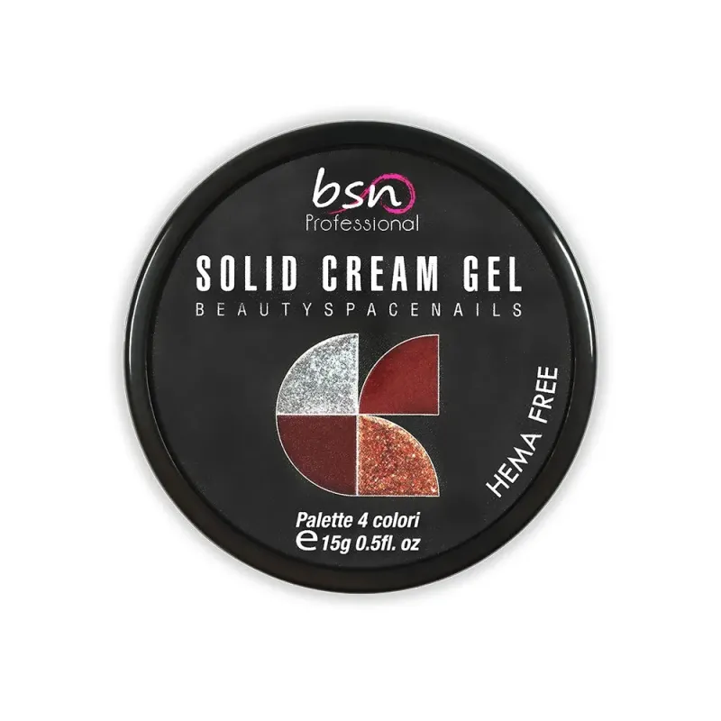 Il solid cream o anche detto solid pudding gel o Japanese gel o cream è un gel comodo e funzionale ed estremamente pratico, la consistenza è più cremosa e la stesura è più facile e veloce dei normali gel color, non lasciano striature e sono setosi e facilissimi da sfumare tra di loro.