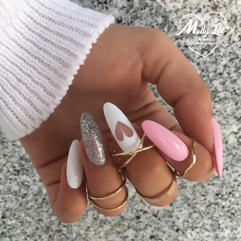 I prodotti Mollylac e Mollynails sono caratterizzati da un packaging accattivante e chic con una boccetta fuxia o bianca metallizzata a forma di diamante.