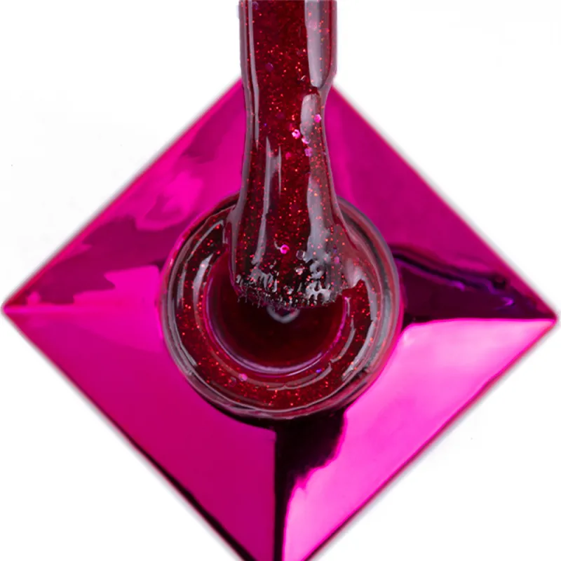MollyLac linea BLING IT ON! - Red me now! 10gr n. 506 è un rosso femminile con glitter rosa.