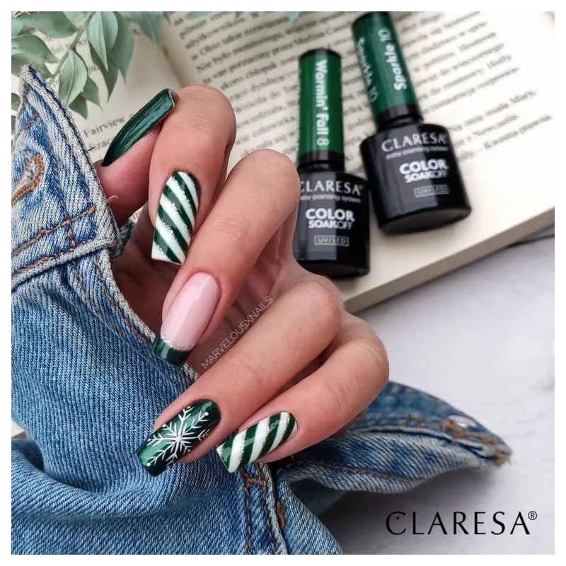 La tonalità 10 della collezione Claresa Sparkle è il verde festivo per eccellenza, pensato per portare la magia del Natale sulle tue unghie. Questo scintillante verde glitterato cattura lo scintillio delle luci natalizie e la ricchezza degli alberi di Natale sempreverdi, creando una finitura audace e brillante che dona immediatamente un'atmosfera allegra e luminosa. Perfetto per le feste natalizie, le manicure invernali o per chiunque ami un tocco di brillantezza stagionale, questo colore offre una lucentezza intensa, un'applicazione scorrevole e una luminosità brillante e accattivante.